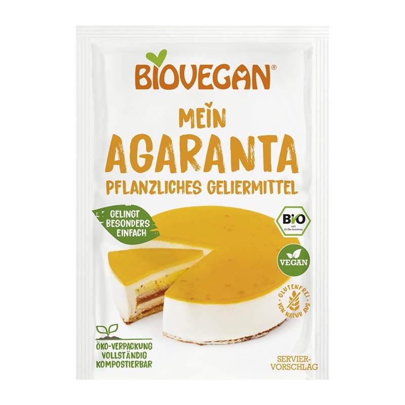 Gelatina vegetală Agaranta bio de la brandul Biovegan este un agent de gelifiere natural obținut dintr-un amestec de agar-agar și maranta (arrowroot), oferind o textură fină și fermă preparatelor. Fiind un produs fără gluten și vegan, acesta reprezintă o alternativă sănătoasă la gelatina de origine animalăDin combinaţia specială dintre cele două ingrediente rezultă o consistenţă deosebit de maleabilă, dar care totuşi poate fi tăiată uşor. Agaranta este incolor.